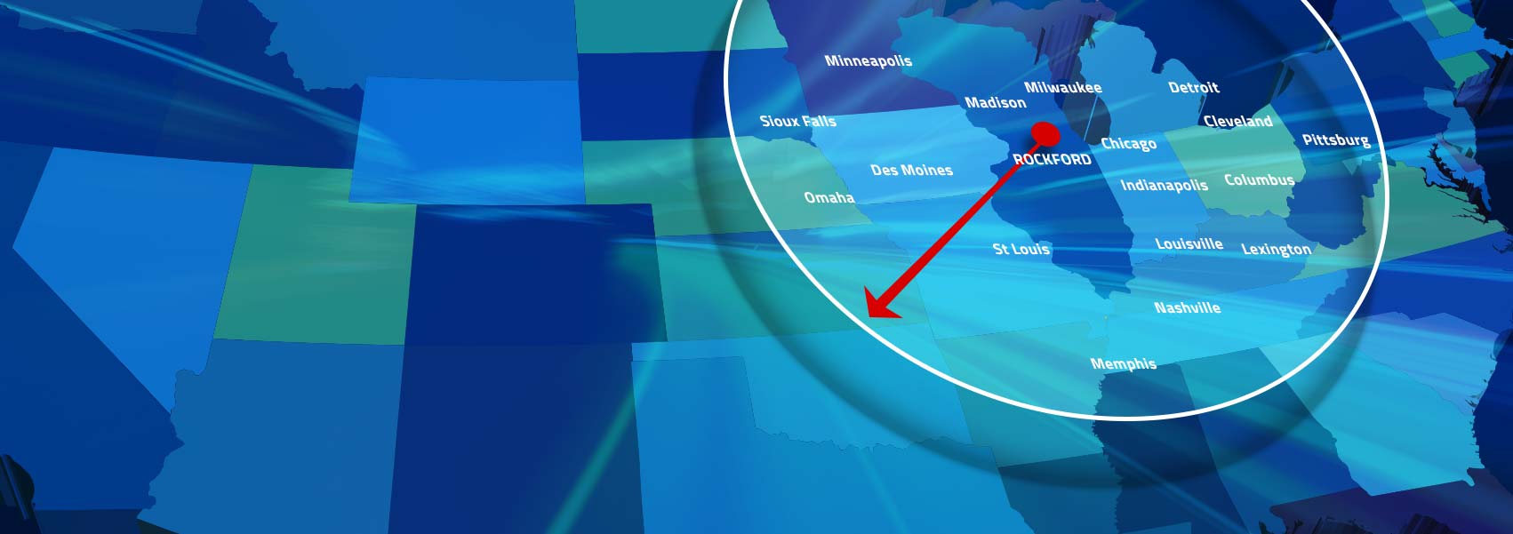 The map above shows the next day delivery range for shipments out of Rockford by Todd Transit or other LTL Carriers. Having your goods warehoused in Rockford doesn't extend your delivery time to most domestic points, versus what you would receive from a Chicagoland Warehouse.